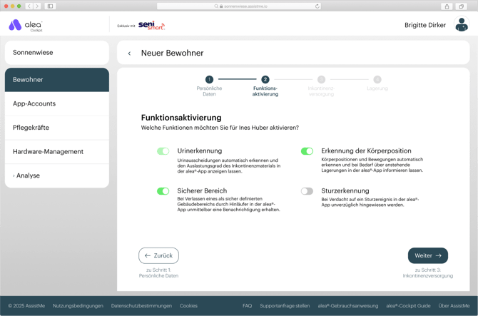 Wie füge ich Pflegeempfänger zum alea-Cockpit hinzu?